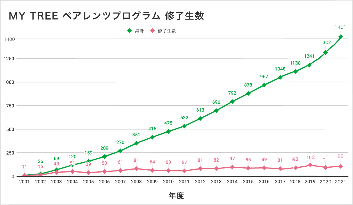 2001年からMY TREEペアレンツ・プログラムをスタートし、これまでに累計1000人以上の親たちにプログラムを届けてきました。